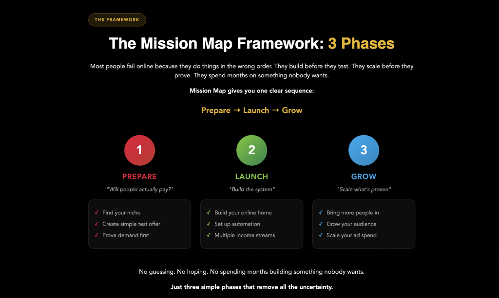 We often help people develop their own business that they can run using this simple 3-phase mission map